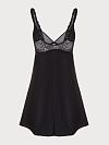 Сорочка baby doll изготовлена из нежнейшего шелка. Такой материал приятен на ощупь и поддерживает комфортную для тела температуру. Зона декольте оформлена кружевом.