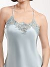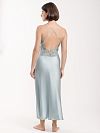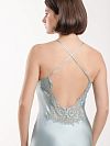 Сорочка длинная выполнена из натурального тонкого шелка. Утончённости изделию добавляет открытая спинка и перекрещивающиеся бретели. В такой сорочке вы будете себя чествовать самой обаятельной и женственной. Зона декольте и спинка декорированы кружевом тон в тон.