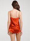 Для создания топа мастера марки использовали тонкий, приятный на ощупь шелковый атлас, который почти не ощущается на теле. Топ дополнен узкими бретелями. Зона декольте и боковые разрезы создают романтичный образ