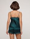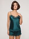 Топ из шелка с отделкой кружевом выполнен в зеленом цвете. Вышивка добавляет утонченности образу.