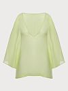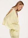 Топ из материала под названием район. В комбинации с брюками или шортами (артикулы FN59N0, FN57N0) получается прекрасный легкий и нежный комплект, который можно использовать как пляжный и так и домашний. Материал район (или рэйон) чарует своей гладкой текстурой, легким блеском, как у 100% шелка, что позволит чувствовать себя в этом изделии максимально комфортно.
