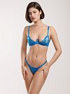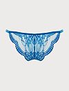 Трусы хипстер выполнены из яркого голубого тактильно приятного кружева. Имеют среднюю посадку.