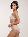 Мастера марки использовали для создания трусов-шорт комбинацию тонкой эластичной микрофибры и нежного кружева с вышитым по полупрозрачному тюлю цветочным мотивом. Белье с плоскими швами мягко садится по фигуре, не натирает и не раздражает кожу.