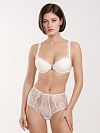Трусы слип имеют высокую посадку и выполнены из эластичного кружева с цветочным рисунком.