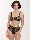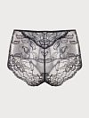 Трусы слип имеют высокую посадку и выполнены из эластичного кружева с цветочным рисунком.