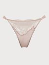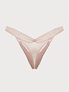 Трусы стринг выполнены из тонкого полупрозрачного кружева. Благодаря добавлению эластановых волокон белье идеально садится по фигуре и не натирает кожу.
