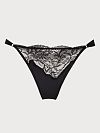 Трусы стринг выполнены из тонкого полупрозрачного кружева. Благодаря добавлению эластановых волокон белье идеально садится по фигуре и не натирает кожу.