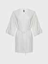 Туника-кимоно из хлопка, декорированная цветами по срезу рукавов. Можно носить нараспашку с шортами из данной коллекции и купальником или использовать поясок, который идет в комплекте.