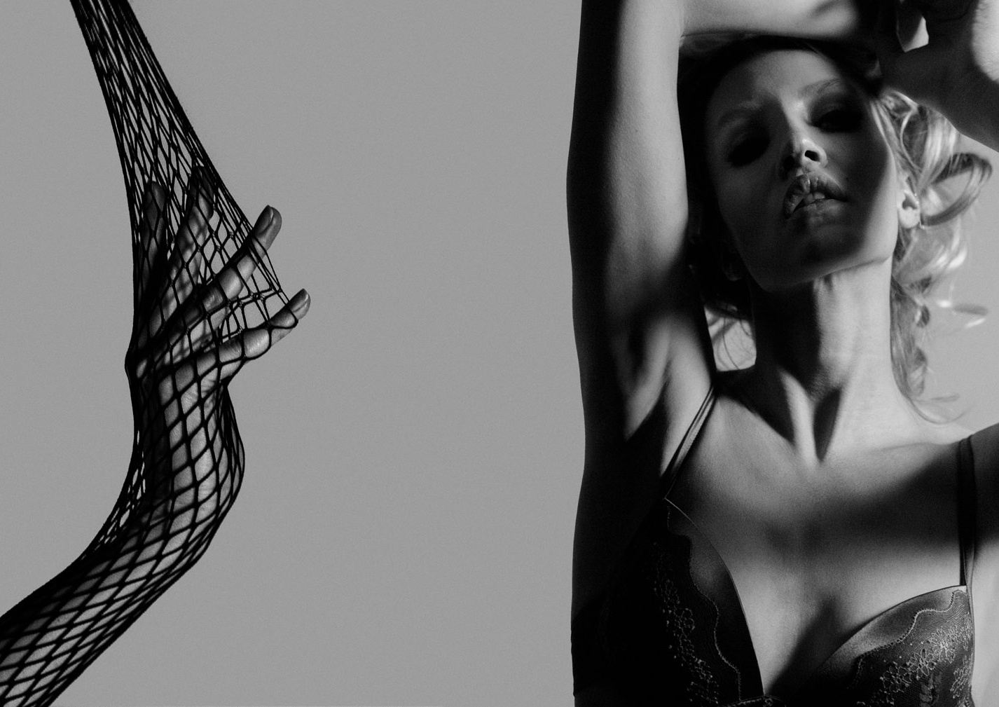 В роскошном черно-белом лукбуке модель продемонстрировала образы из бельевой коллекции SS`16 от таких брендов, как G.A.Paladini, Ritratti, Ermanno Scervinno и собственных брендов – Savoia, Beatrice и нового Private Label Wild Orchid, представленного эксклюзивно в магазинах сети.