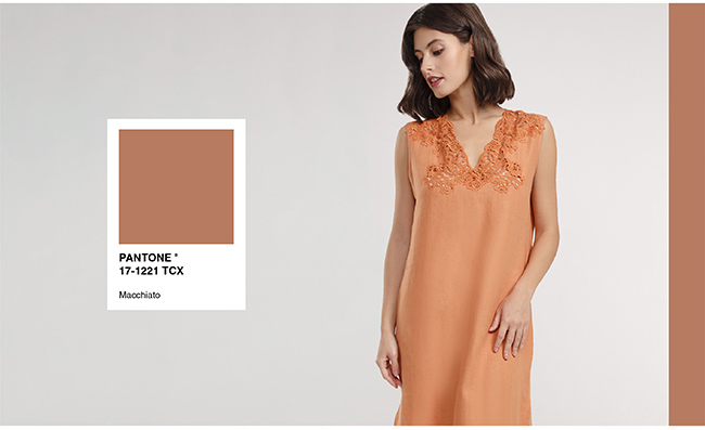 Macchiato – это кремовый оттенок, «пропитанный теплом». Он проявляется в виде легкого карамельного оттенка, который особенно хорошо сочетается с теплыми цветами, представленными в этом сезоне.